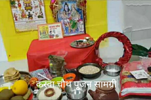कुंकुम, शहद, अगरबत्ती, पुष्प, कच्चा दूध, शक्कर, शुद्ध घी, दही, मेंहदी, मिठाई, गंगाजल, चंदन, चावल, सिन्दूर, मेंहदी, महावर, कंघा, बिंदी, चुनरी, चूड़ी, बिछुआ, मिट्टी का टोंटीदार करवा व ढक्कन, दीपक, रुई, कपूर, गेहूँ, शक्कर का बूरा, हल्दी, पानी का लोटा, गौरी बनाने के लिए पीली मिट्टी, लकड़ी का आसन, छलनी, आठ पूरियों की अठावरी, हलुआ, दक्षिणा के लिए पैसे।