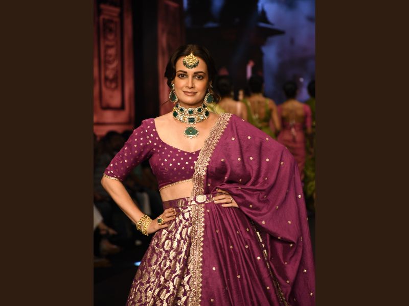 Dia Mirza made a stunning appearance as the showstopper for fashion designer Chaulaz Heritage at the Bombay Times Fashion Week 2024. The actress gracefully walked the ramp, captivating the audience with her elegance and charm.
